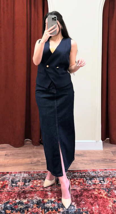 جنس دامن : جین گرم بالا میباشد مقدار خيلي كمي كشساني دارد