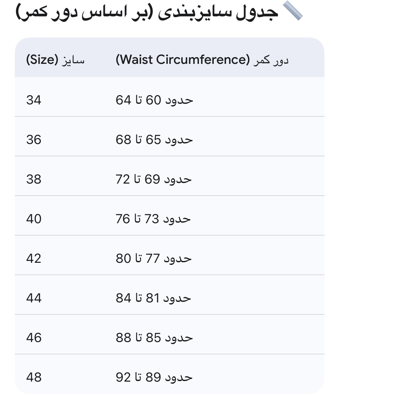 سایزبندی کامل موجوده (مطابق جدول موجود در فوتو سایز خود را انتخاب کنید)